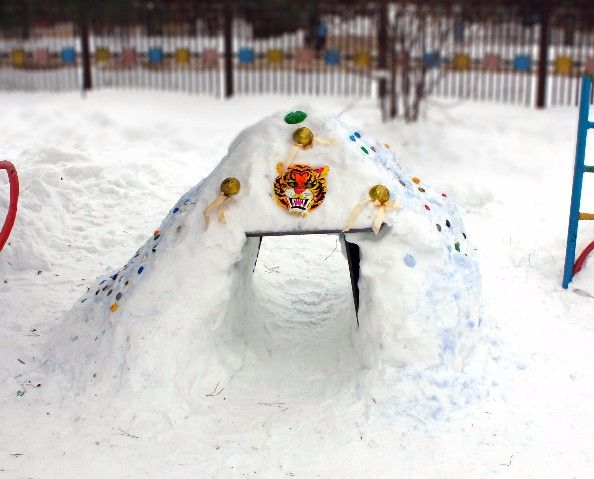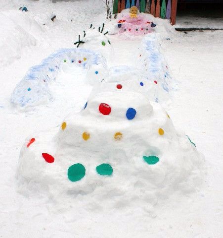 Для интересной прогулки зимой, для ребят постоены снежные постройки.
