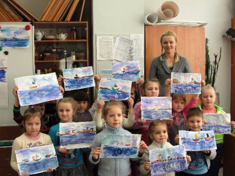 Мастер-класс для детей детских садов № 42, 24 провела педагог – методист Соловьева Екатерина Александровна. Она познакомила детей с техникой рисования морского пейзажа «по-сырому». Получилось здорово!